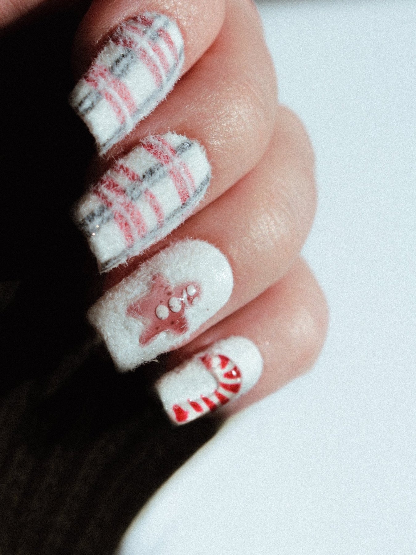 Nail art texture et motif pull, avec éléments de Noël 3D
