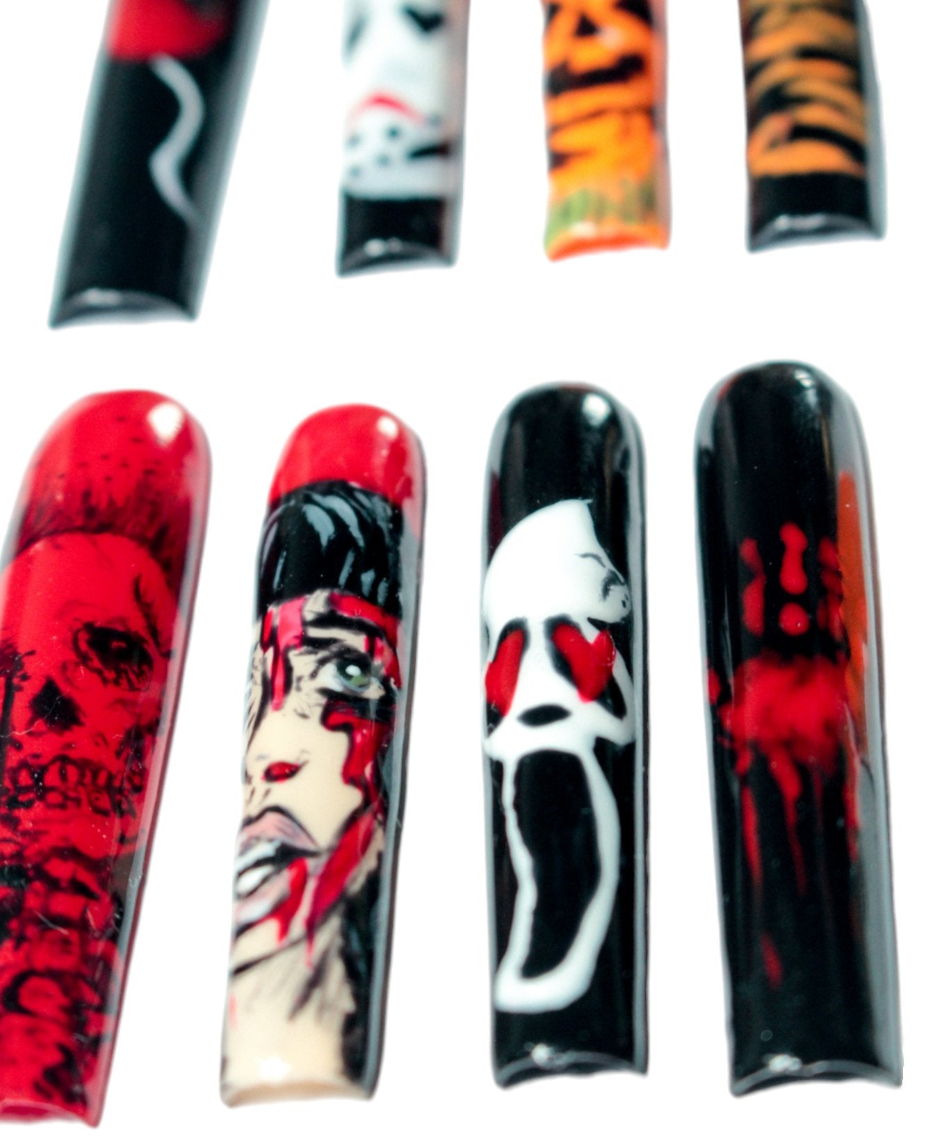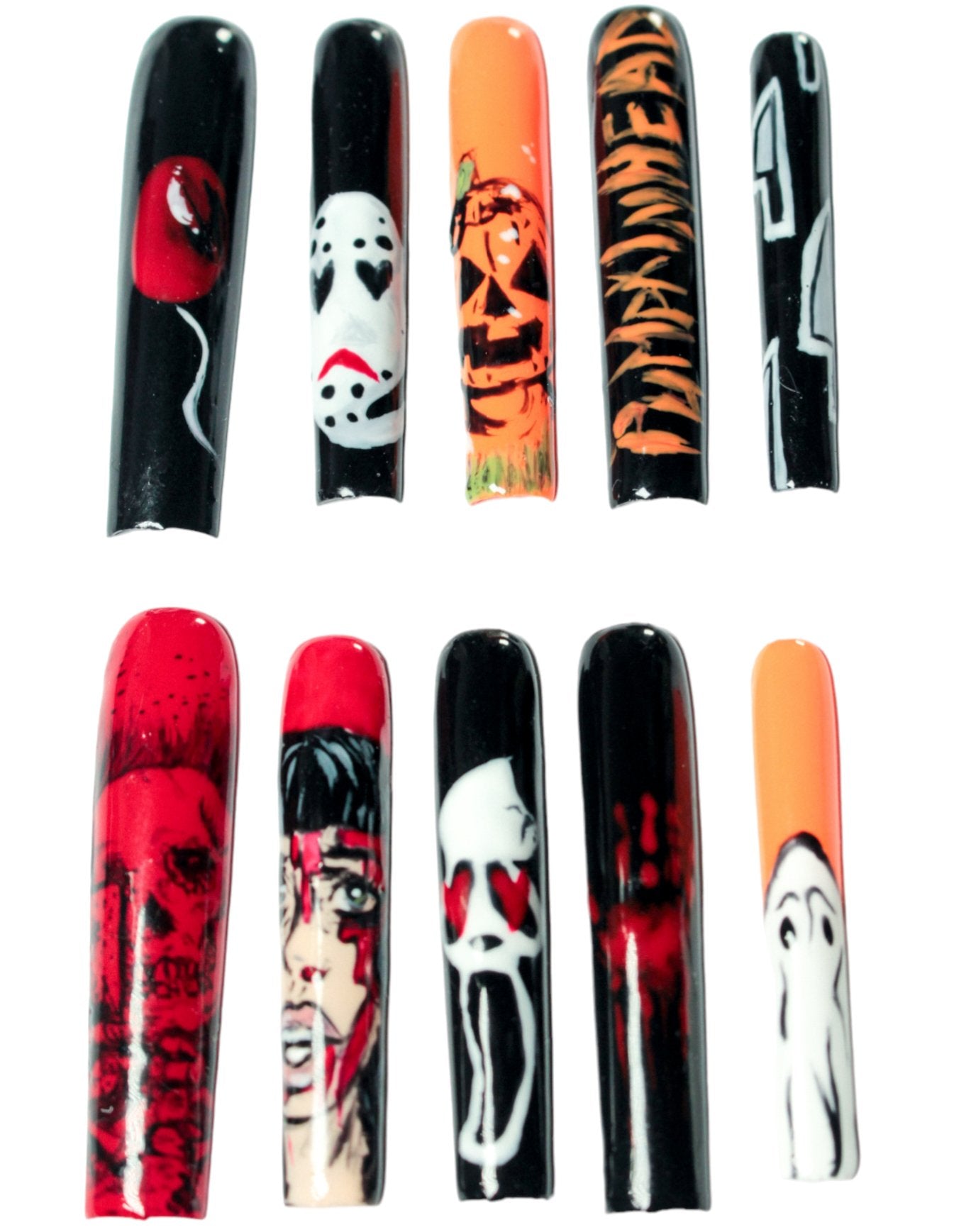 Set de nail art inspiré de divers personnages fictifs d'horreur