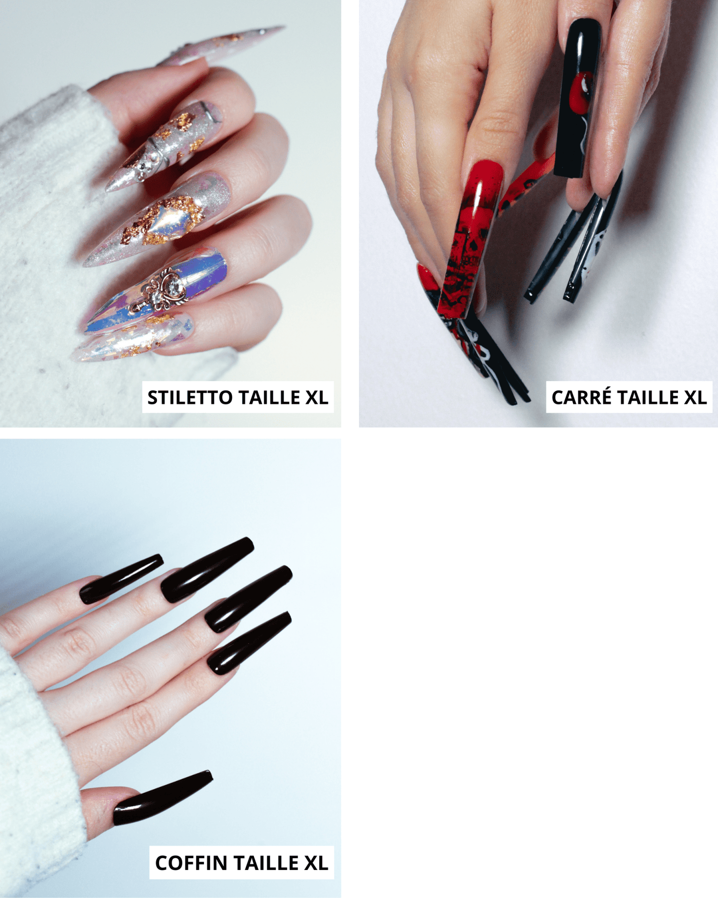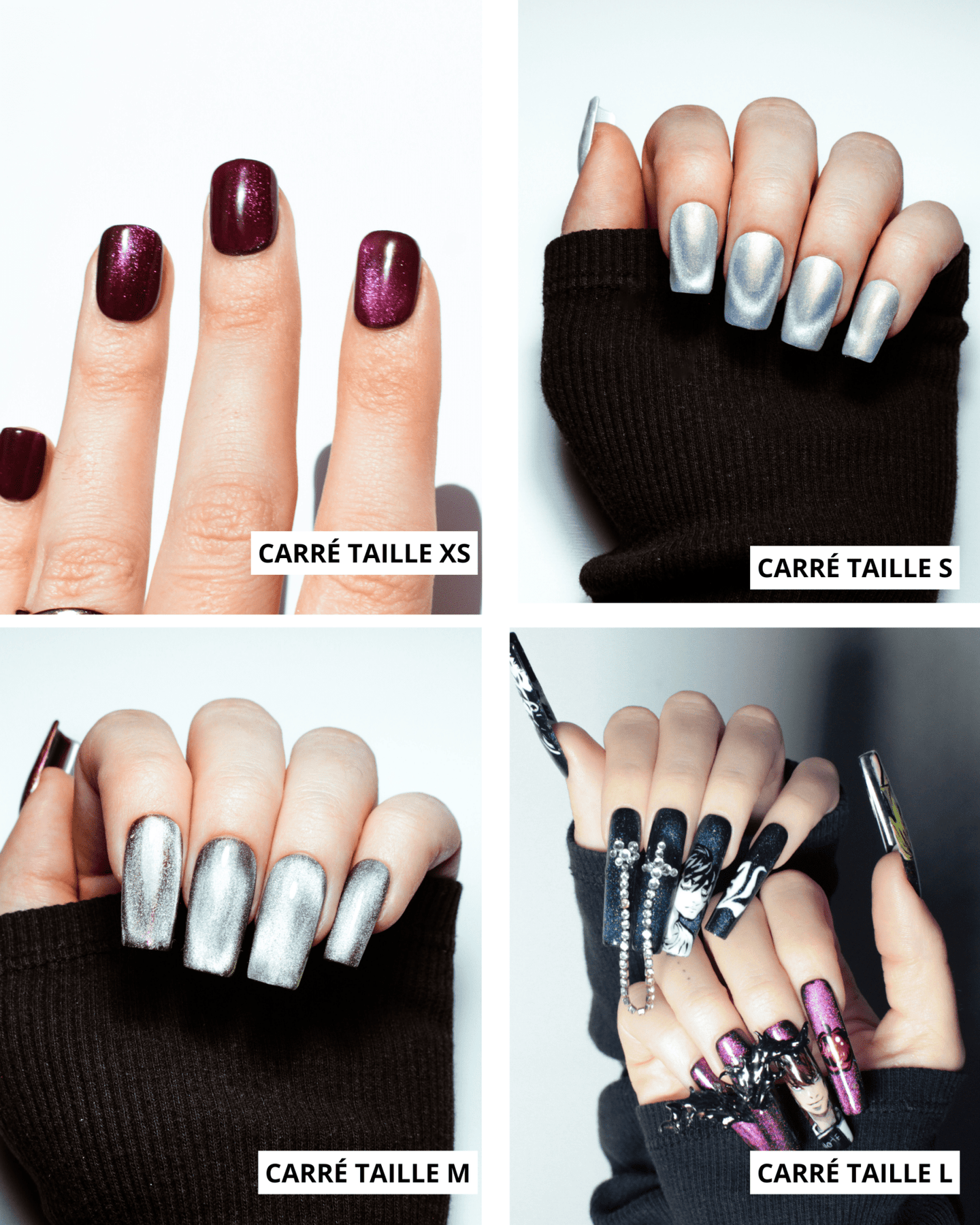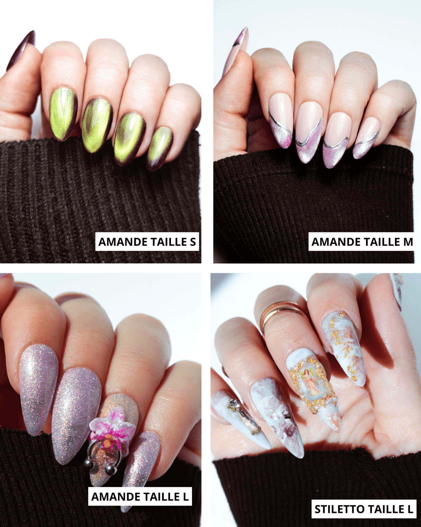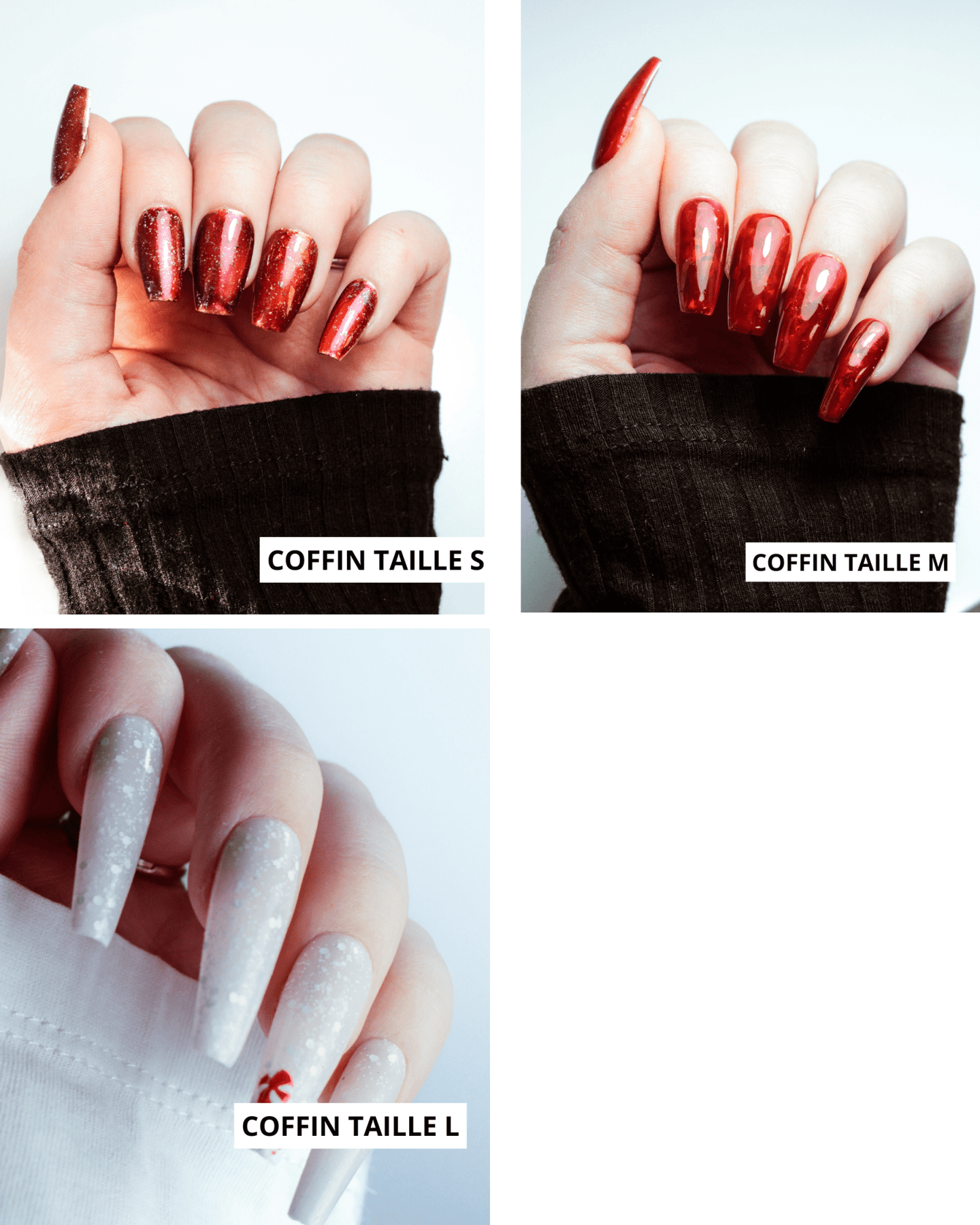 Si tu n'es pas Ă l'aise avec le fait de mesurer toi mĂȘme tes ongles, tu as la possibilitĂ© de commander un sizing kit pour ĂȘtre sĂ»r Ă 100% de la taille et de la forme qui te convient.