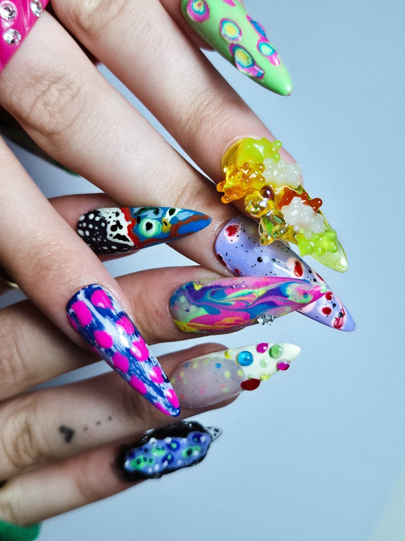 Les press on nails sont des faux ongles fabriqués sur mesure que l'on fixe grâce à des gels pads.