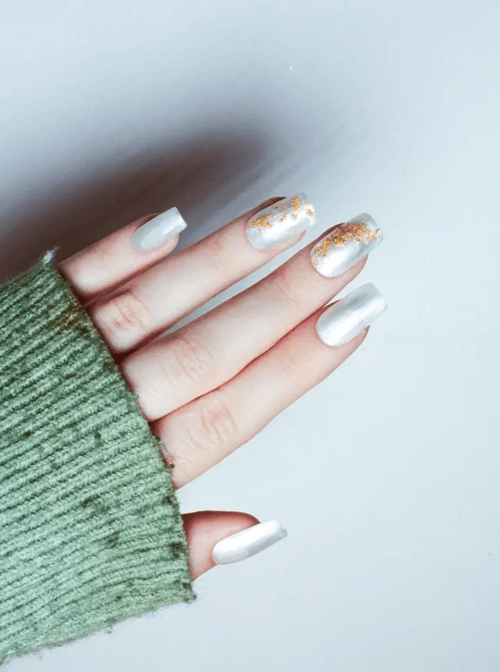Blanc nacré avec détails en feuilles d'or