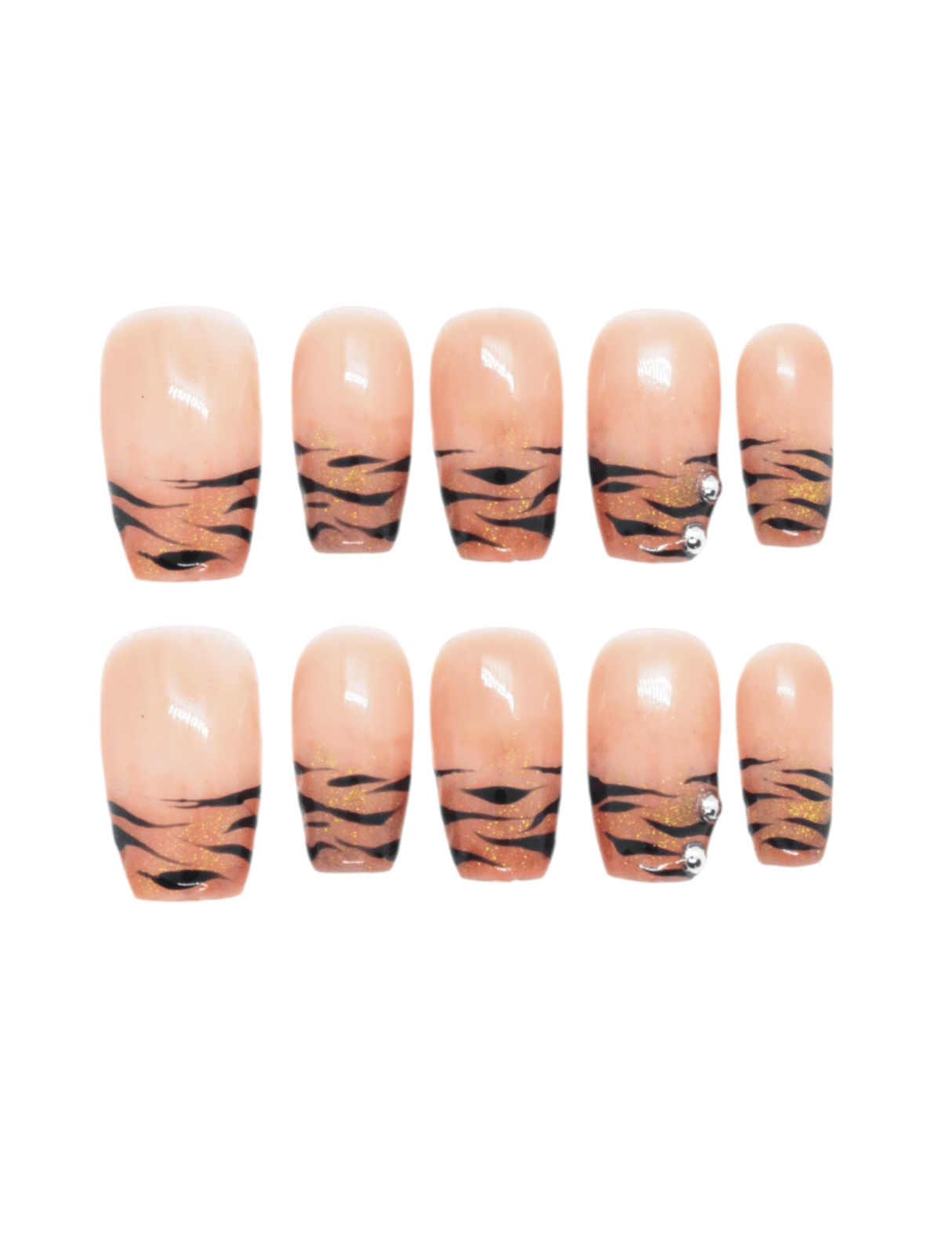 Press on nails motif tigre avec effet cat eyes, et piercing sur l'annuaireÂ