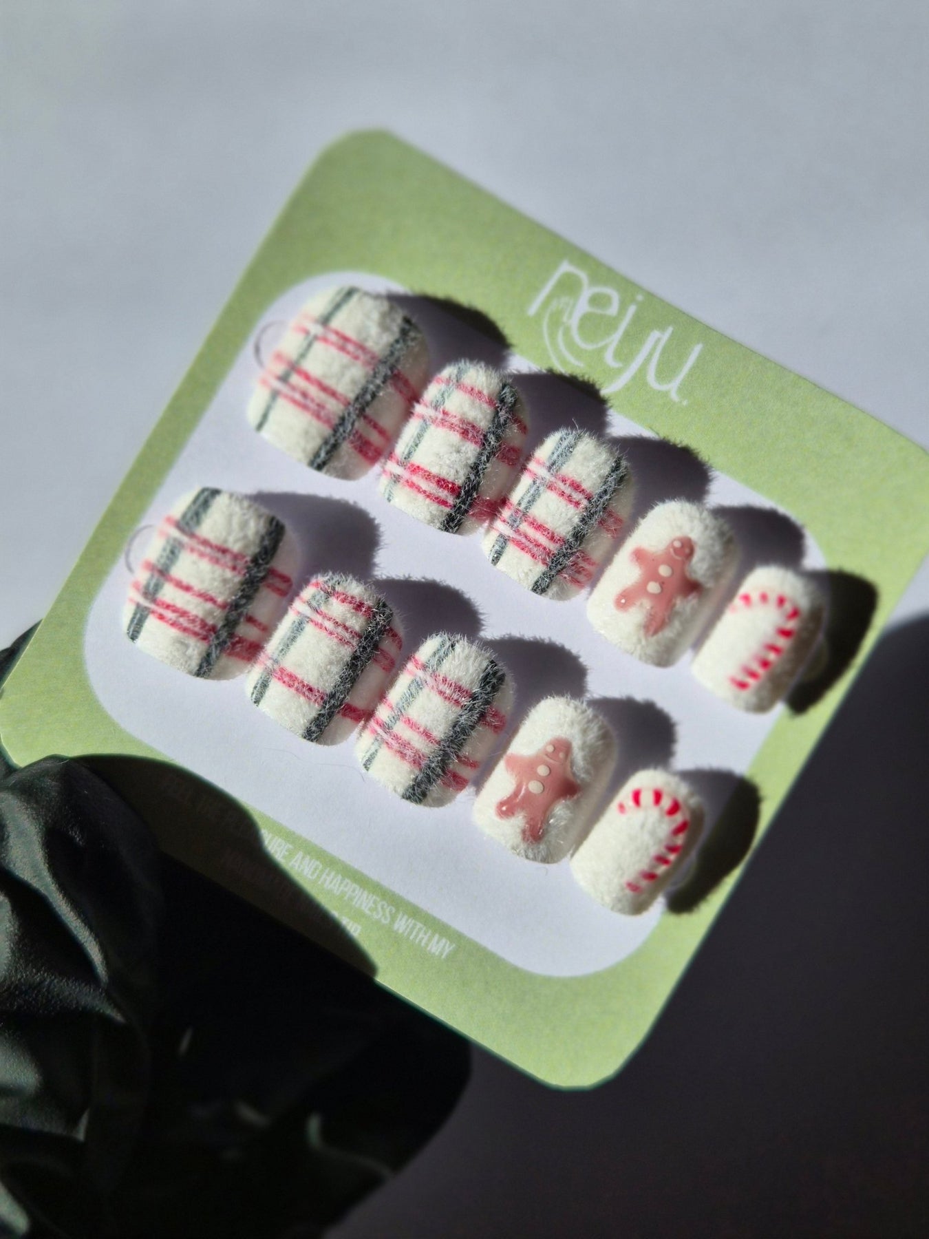 Nail art texture et motif pull, avec éléments de Noël 3D