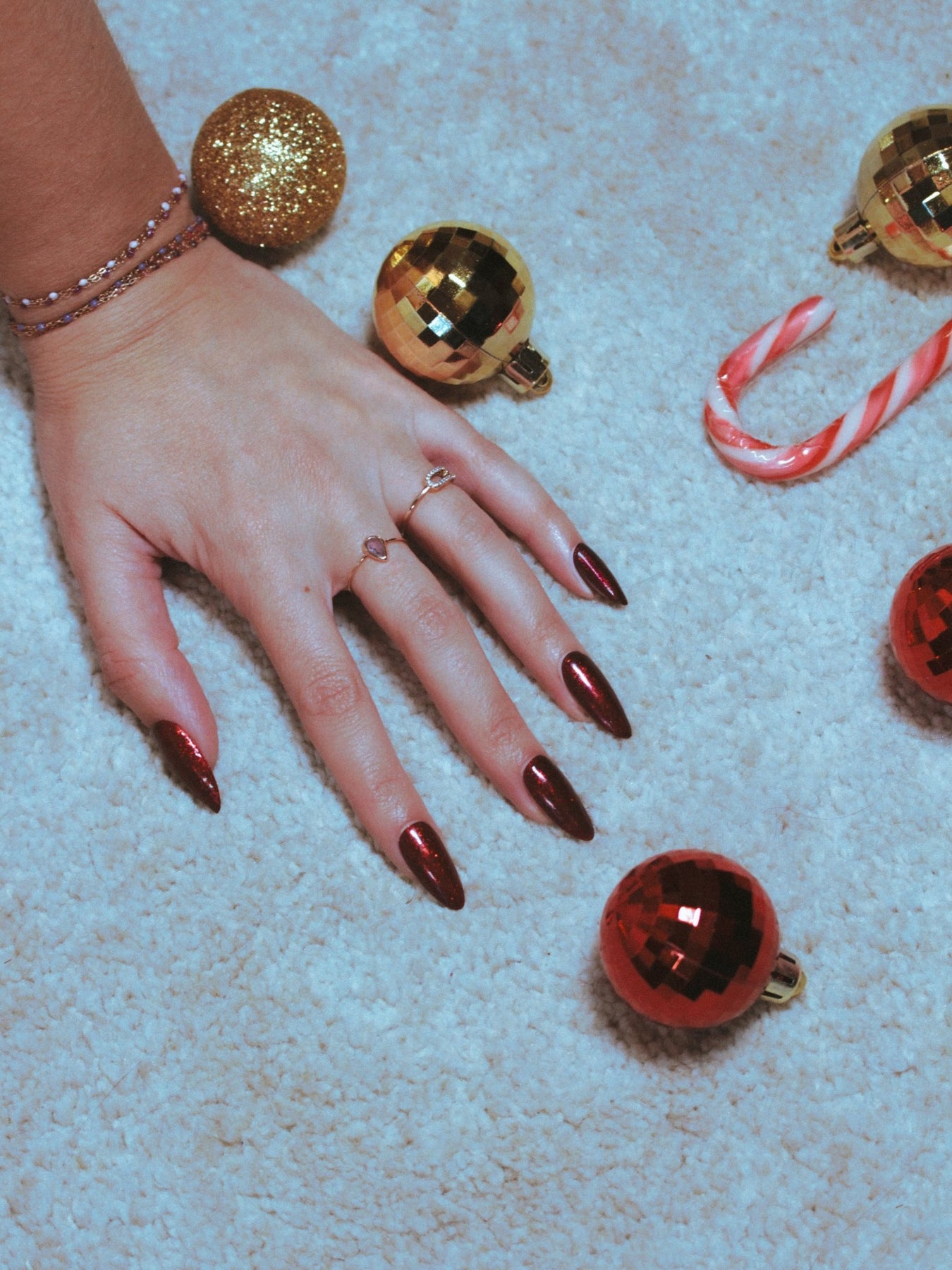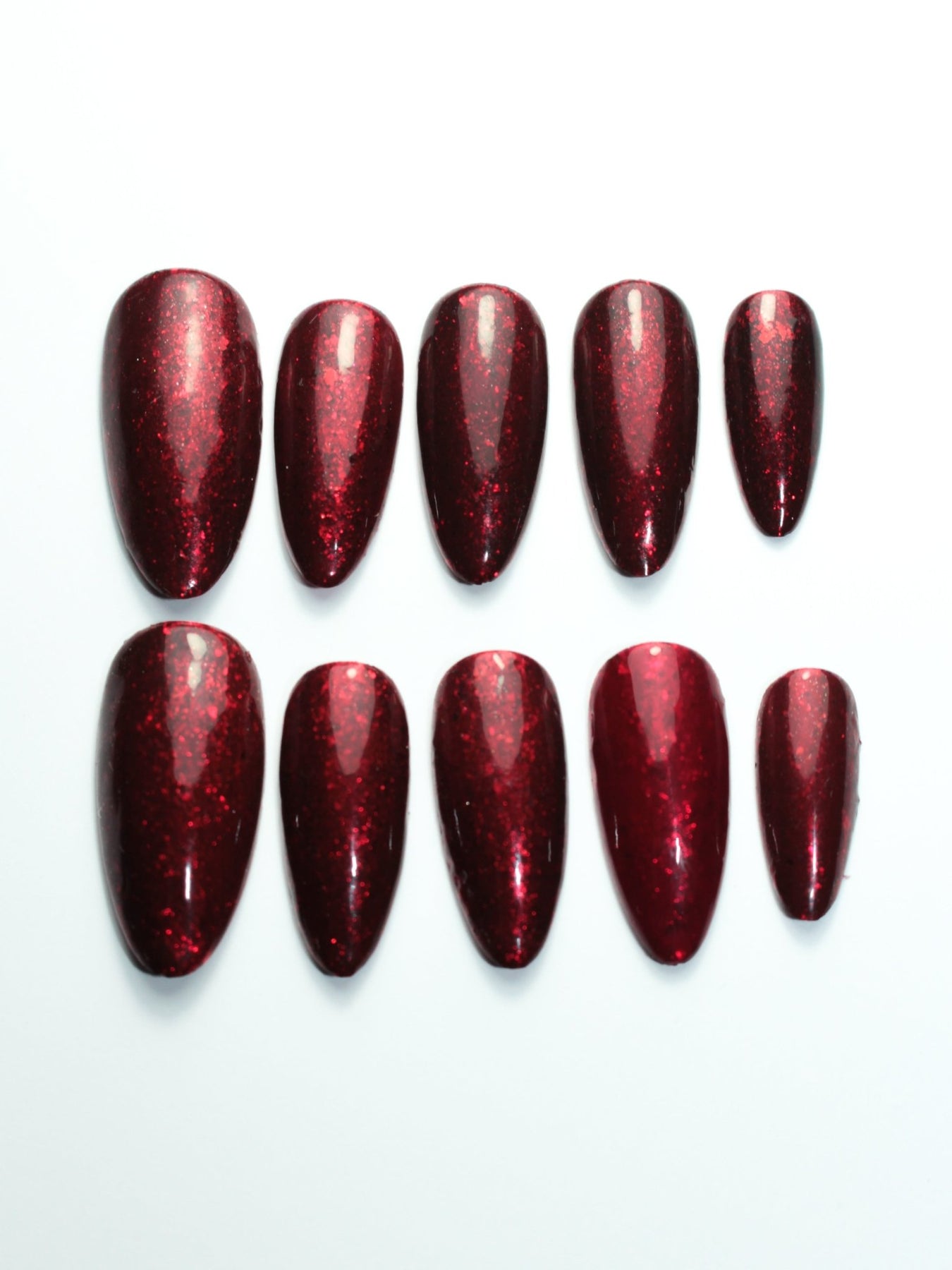 Des paillettes pour les fêtes ✨️, press on nails rouge avec foils et finition glass rouge foncé