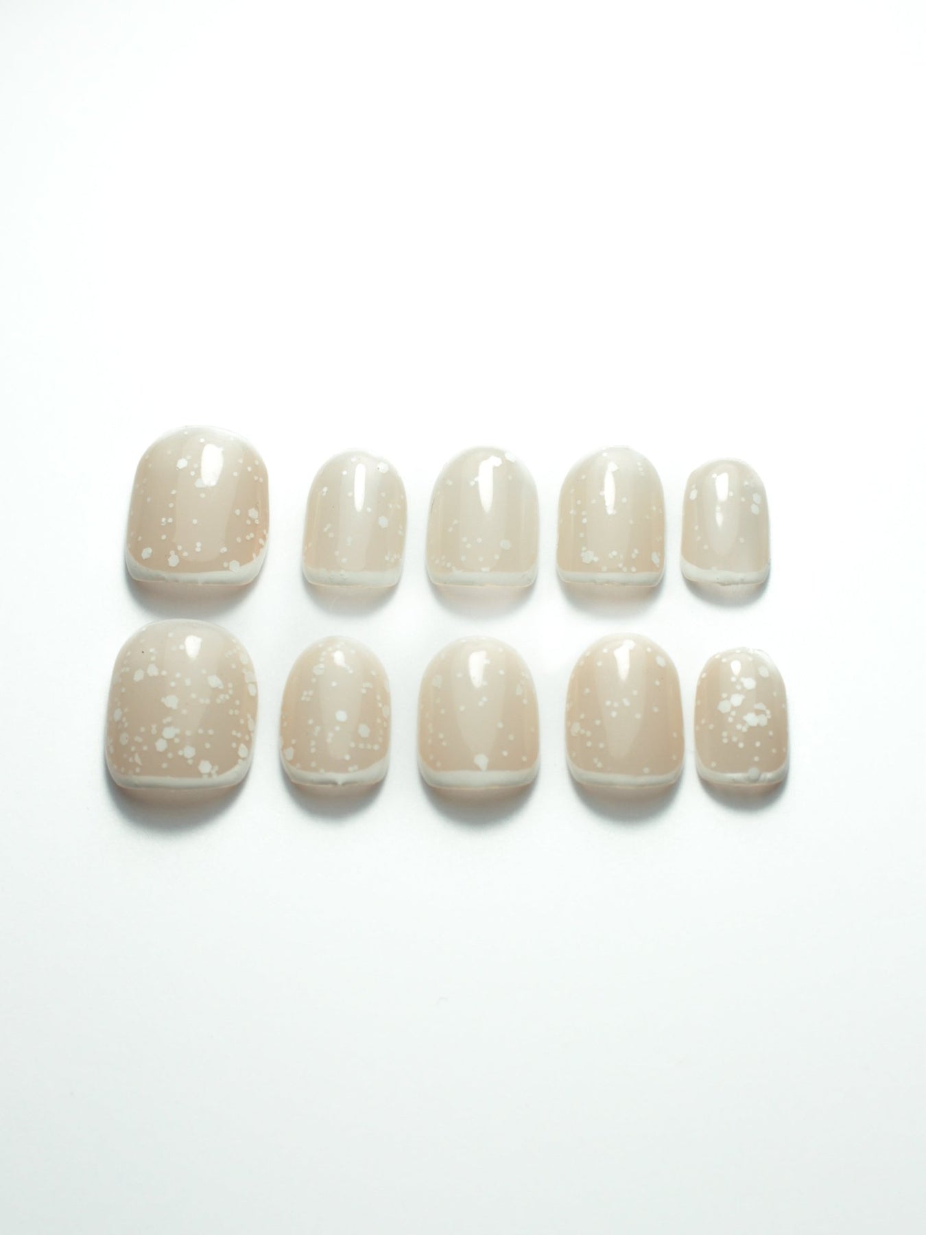 Nail art hivernal, french blanche et base nude, et finition effet neige đ€